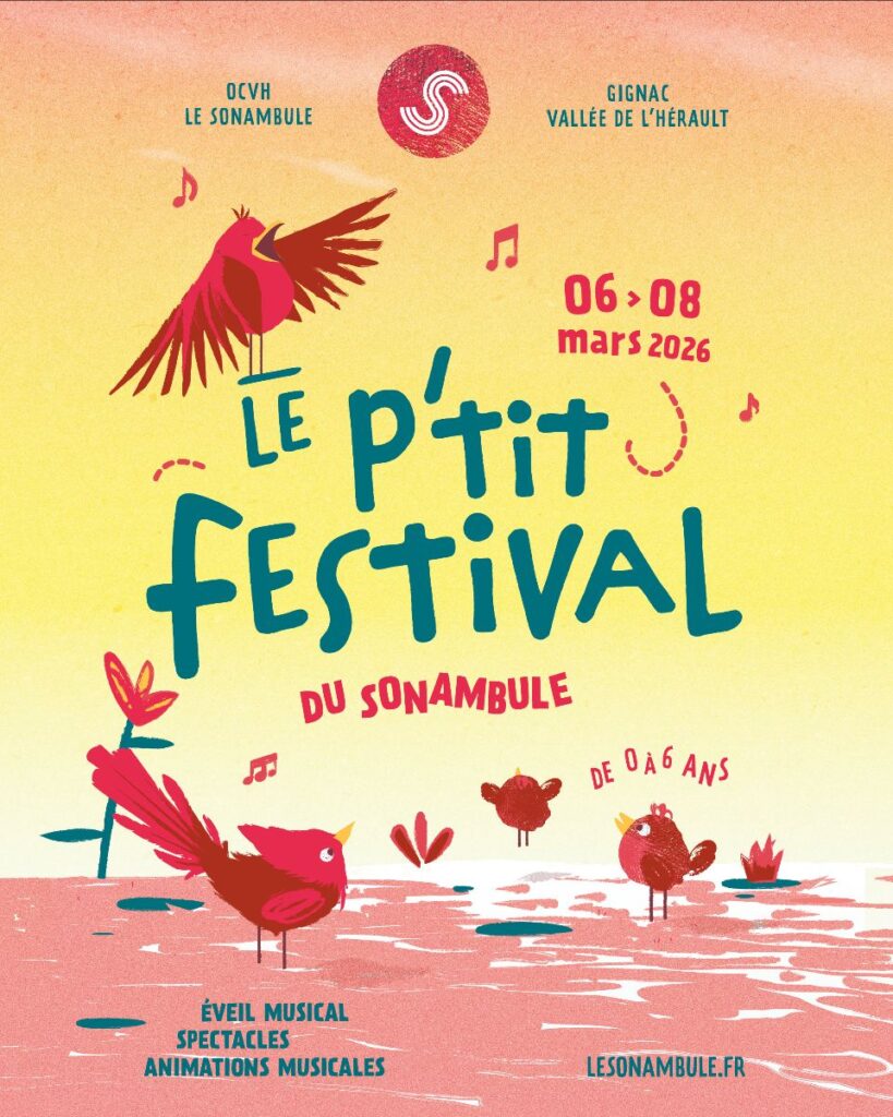 Du 06 au 08 mars, Le P’tit Festival du Sonambule à Gignac (34) éclot pour trois jours tout doux dédiés à l’éveil artistique des 0–6 ans.